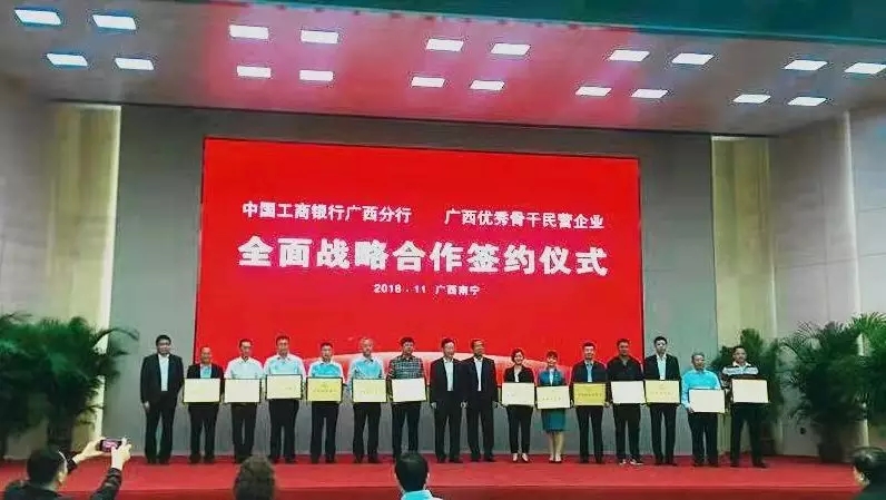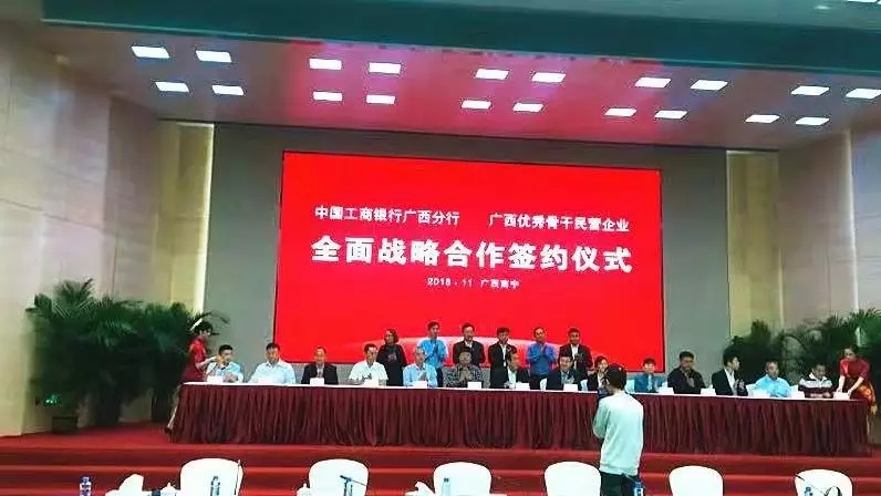 2018年11月14日下午,在南寧市荔園維景國際大酒店B2F報告廳,華業(yè)集團董事長龍其生受邀出席中國工商銀行廣西分行與廣西優(yōu)秀骨干民營企業(yè)全面戰(zhàn)略合作座談會,并與工行廣西分行簽署全面戰(zhàn)略合作協(xié)議。