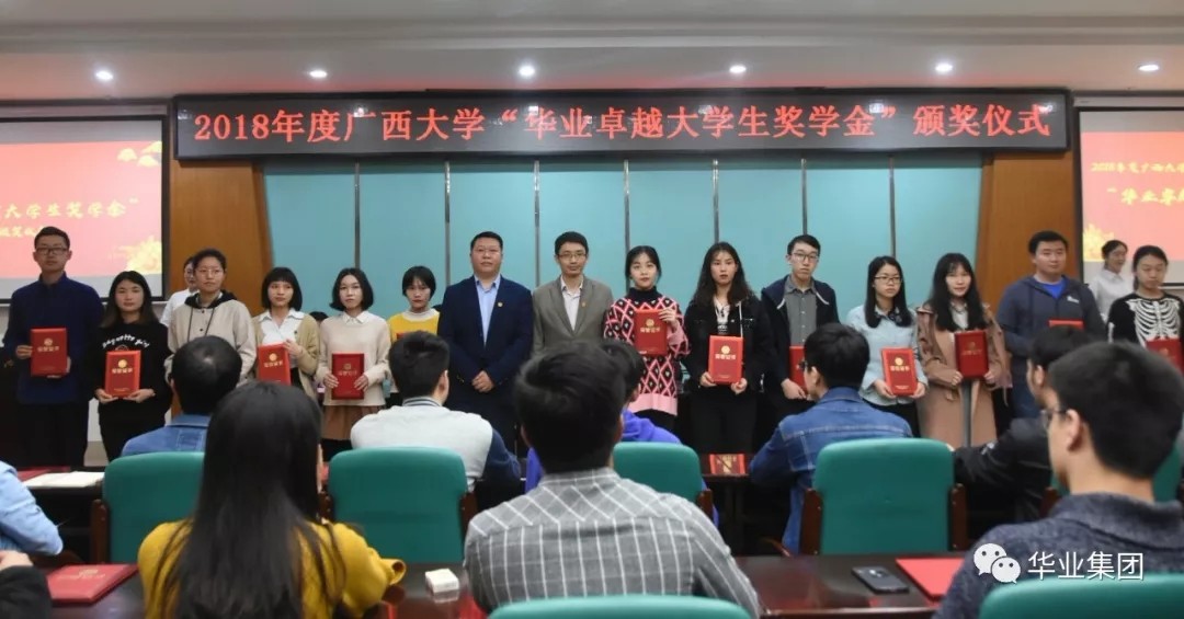 2018年度“華業(yè)卓越大學(xué)生獎(jiǎng)學(xué)金”頒獎(jiǎng)儀式在廣西大學(xué)隆重舉行