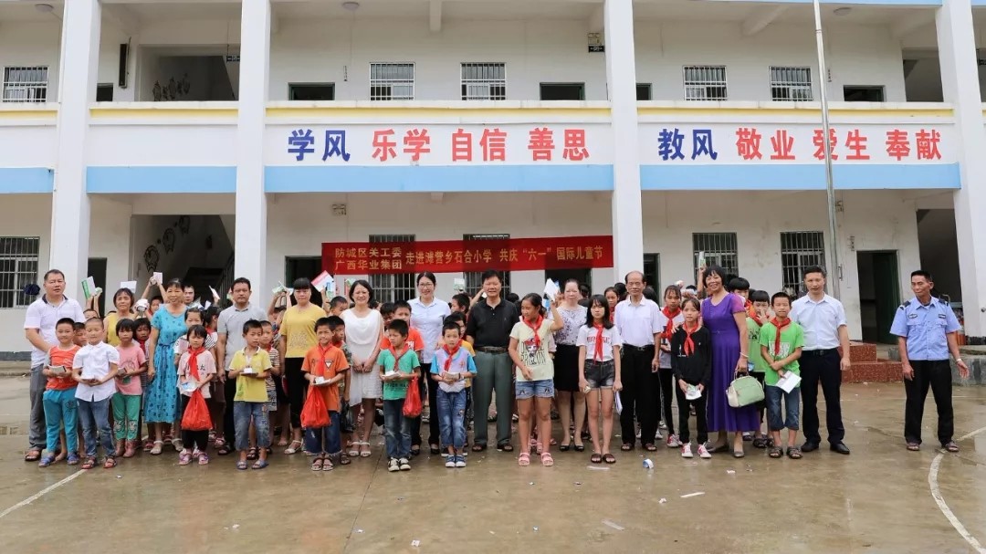 5月28日,在“六一”國際兒童節(jié)即將到來之際,防城區(qū)關愛下一代工作委員會副主任黃志三、曾其文,廣西華業(yè)投資集團工會主席鐘麗霞等領導一行前往防城區(qū)灘營鄉(xiāng)石合村小學,看望全校師生,并送上節(jié)日的問候和祝福。