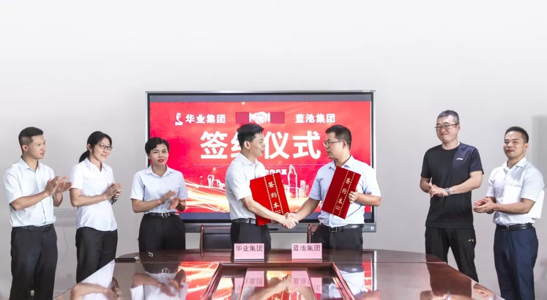 華業(yè)集團(tuán)副總裁熊昭斐,藍(lán)池集團(tuán)董事長(zhǎng)助理王艷剛分別代表雙方簽署了合作協(xié)議,華業(yè)集團(tuán)財(cái)務(wù)總監(jiān)李情、工會(huì)主席鐘麗霞、藍(lán)池集團(tuán)項(xiàng)目部總監(jiān)左江濤等領(lǐng)導(dǎo)出席見證了簽約儀式。