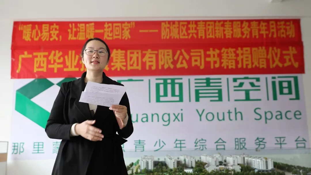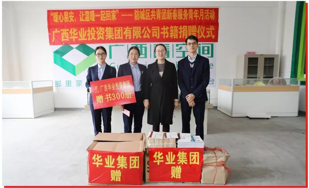 2020年1月15日,華業(yè)集團(tuán)到防城區(qū)水營(yíng)街道那里蒙易地扶貧搬遷安置點(diǎn)開(kāi)展“暖心易安,讓溫暖一起回家”主題便民利民惠民服務(wù)活動(dòng)?;顒?dòng)由共青團(tuán)防城區(qū)委員會(huì)、廣西華業(yè)投資集團(tuán)有限公司主辦,防城區(qū)水營(yíng)街道、防城港市愛(ài)心志愿者協(xié)會(huì)協(xié)辦。華業(yè)集團(tuán)工會(huì)主席鐘麗霞帶隊(duì)參加了活動(dòng),并代表華業(yè)集團(tuán)向那里蒙安置點(diǎn)青少年服務(wù)平臺(tái)捐贈(zèng)有益書(shū)刊300余冊(cè)。