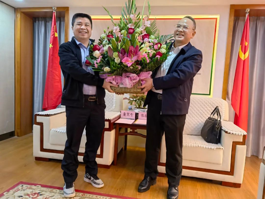 自治區(qū)工商聯(lián)黨組成員、副主席韋永山(右)、廣西總商會(huì)副會(huì)長(zhǎng)、華業(yè)集團(tuán)董事長(zhǎng)龍其生(左)