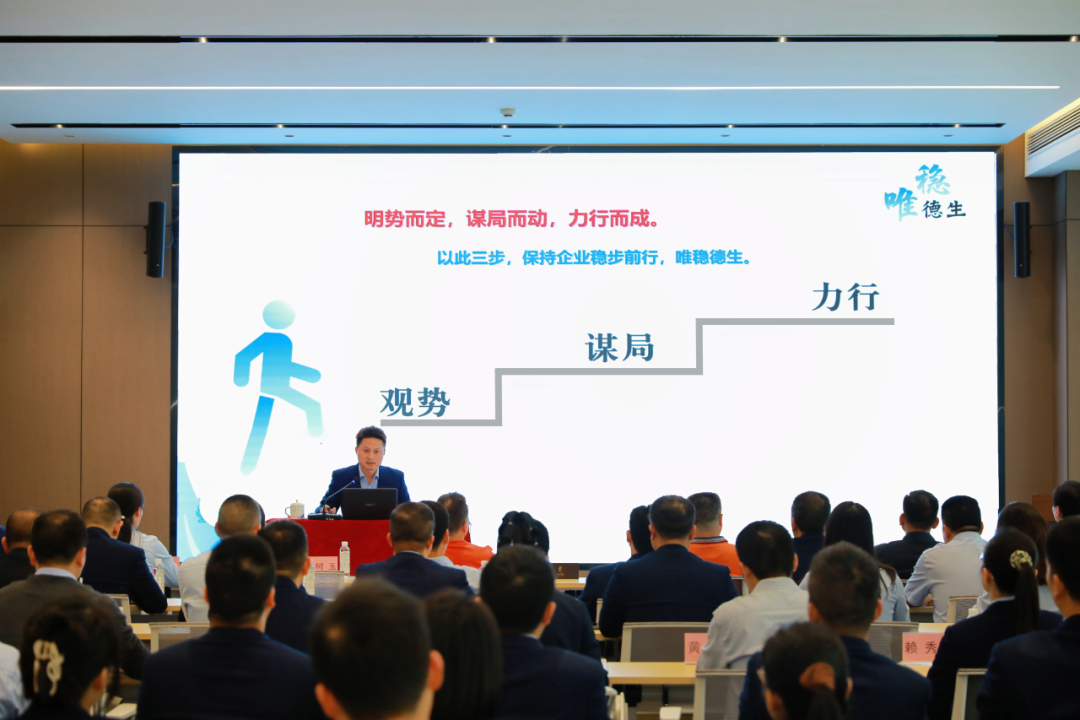課程緊扣“觀勢、謀局、力行”三大維度,錨定安全、數(shù)字、創(chuàng)新、文化、品牌“五維華業(yè)”框架,對“唯穩(wěn)德生”核心戰(zhàn)略進(jìn)行了系統(tǒng)闡述。
