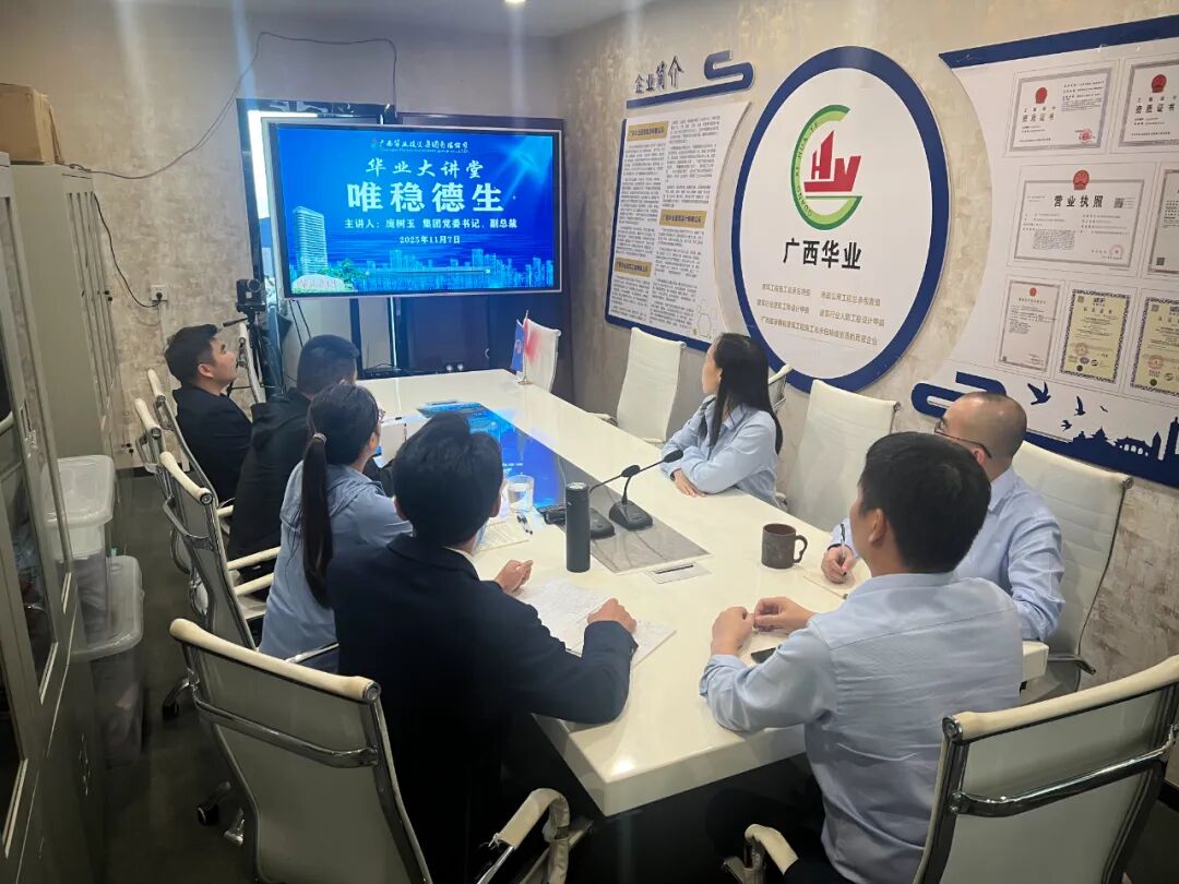 2025年11月7日,華業(yè)集團(tuán)2025年第五期“華業(yè)大講堂”培訓(xùn)在華業(yè)大廈24樓會議室圓滿舉行。集團(tuán)黨委書記、副總裁龐樹玉以《維穩(wěn)德生》為題作專題分享,旨在引導(dǎo)全體員工在建筑行業(yè)“寒冬”中統(tǒng)一思想、找準(zhǔn)路徑、穩(wěn)健前行。集團(tuán)董事長龍其生、總裁龍其偉、副總裁廖人興、熊昭斐等領(lǐng)導(dǎo)及各子公司中高層管理人員、員工代表共計(jì)105人參加。本次培訓(xùn)設(shè)集團(tuán)主會場以及北部灣、粵港澳、盛萬事、華業(yè)龍輝等多個視頻分會場,活動由集團(tuán)黨委副書記王孟軍主持。